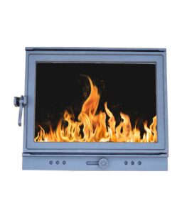 Ușă din fontă CĂMIN, cu sticlă și reglare putere flacără, 575×495 mm
