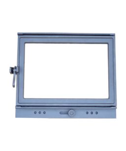 Ușă din fontă STIL cu sticlă și reglare putere flacără, 480×480 mm