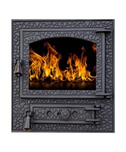 Ușă din fontă VERSACE fără sticlă, cu cenușar și reglare putere flacără, 500×370 mm