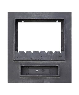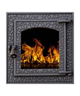 Ușă din fontă RUSTIC mediu cu sticlă, cenușar și reglare putere flacără, 420×370 mm