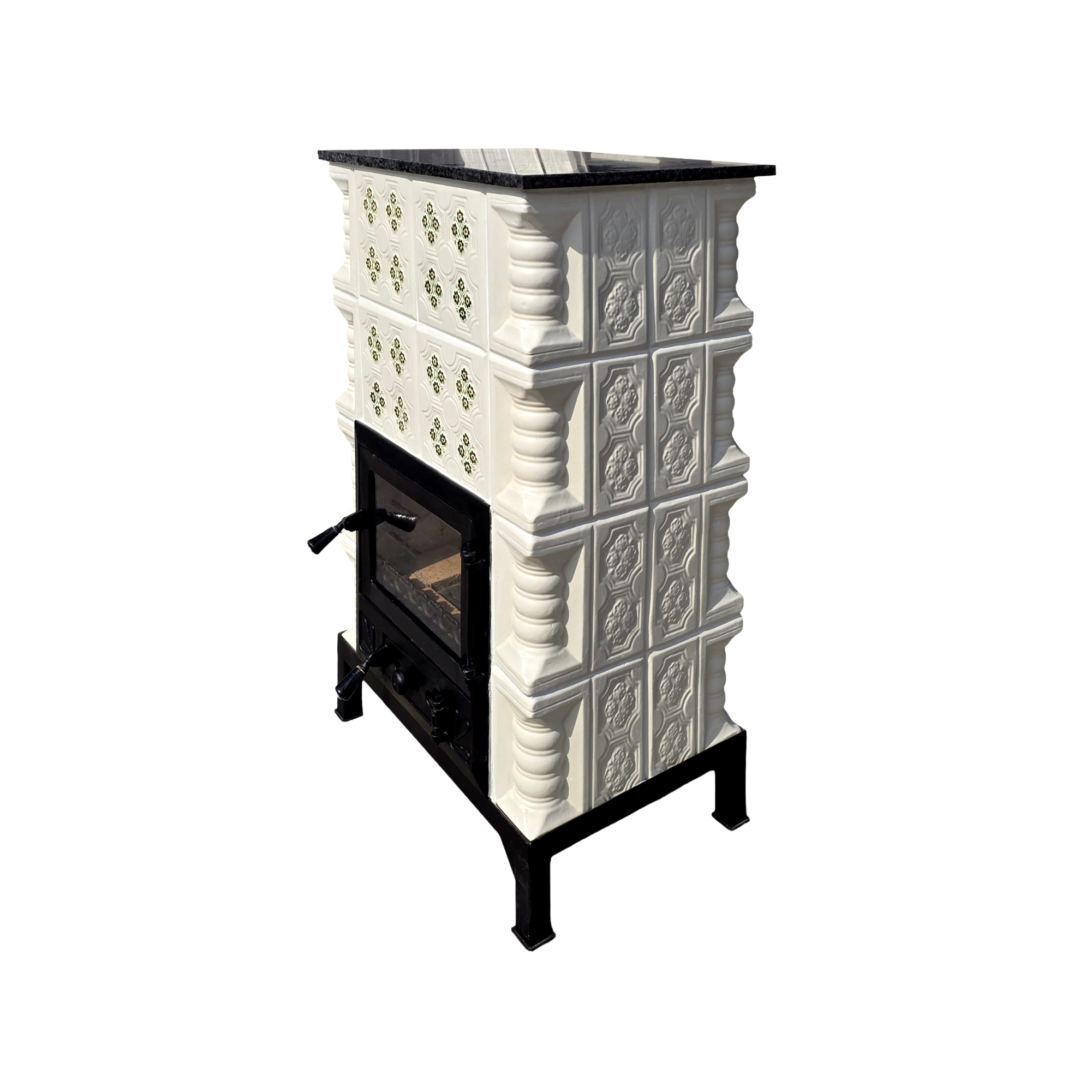 Faurit in spiritul sobarilor traditionali, Semineu teracota alba 4 randuri reprezinta o solutie excelenta pentru incalzit, cu un bun randament termic la un consum scazut de combustibil. Construit pe un cadru solid din elemente de fier forjat 5 mm grosime, cu fiecare cahla de teracota captusita cu caramida refractara, focar dublu samotat, evacuare pe stut metalic de 4 mm grosime, lucrat cu adeziv si chit rezistente la temperatura, rezistenta la transport/manipulare Semineu teracota alba 4 randuri constituie cea mai rapida solutie de incalzit, precum si o frumoasa piesa de mobilier ce poate impodobi casa dvs. a carei valoare va creste odata cu trecerea timpului. Placile decorate sunt pictate manual cu vopsele ecologice, cu desene inspirate din motivele populare romanesti.