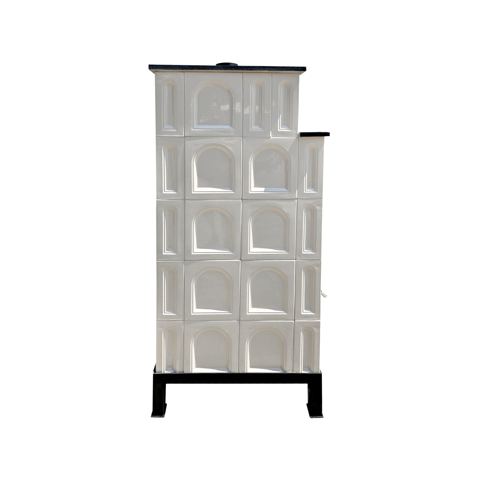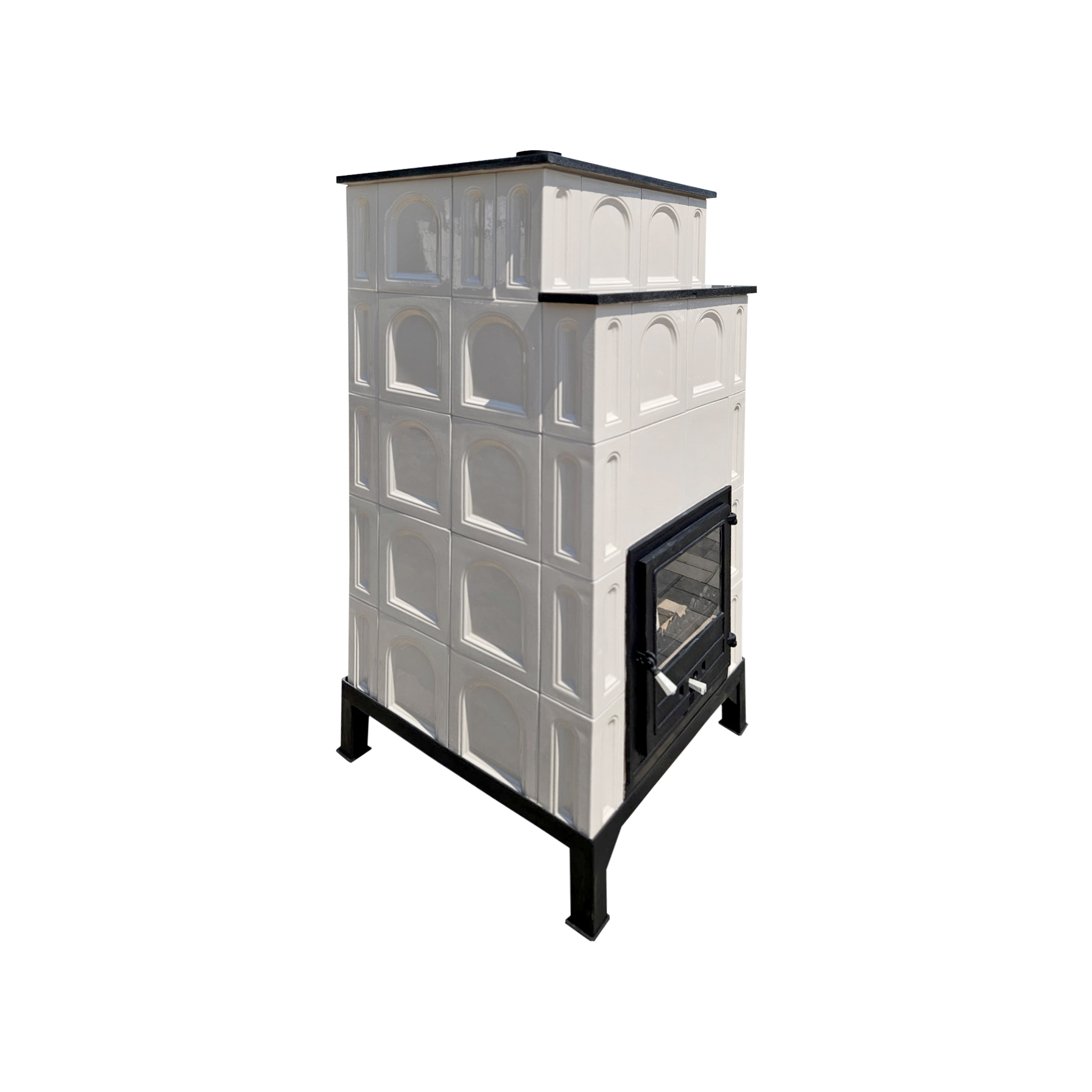 Realizată în spiritul sobarilor tradiționali, semineul din teracotă bizantin bej UNICAT IN ROMANIA cu ușă din sticlă este o adevărată piesă de artă, fabricată din teracotă de cea mai înaltă calitate la nivel european. Construcția sa se bazează pe un cadru solid din fier forjat de 5 mm grosime, fiecare cahle fiind căptușită cu cărămidă refractară, iar focarul și interiorul sunt dublu șamotate de la primul până la ultimul rând. Sistemul de evacuare este realizat printr-un ștuț metalic de 4 mm grosime, montat cu adezivi și chituri rezistente la temperaturi ridicate, ceea ce îi conferă durabilitate și rezistență la transport și manipulare.