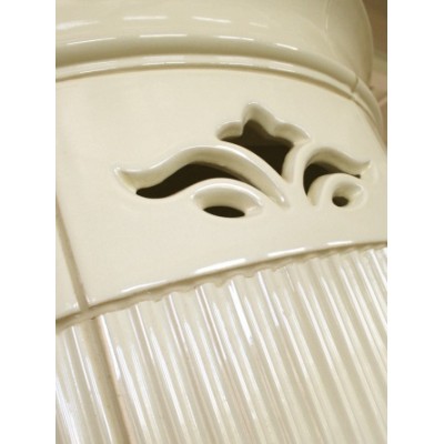 Există plăci de teracotă și umplutură de mortar de teracotă între nervurile plăcilor, precum și mortar solid orizontal pentru suprafețele cornișei. Aceasta înseamnă o zidărie de stocare a căldurii tencuită cu grosimea medie de 4 – 5 cm, care este de cca. 80-120 kg masa de stocare a căldurii.
