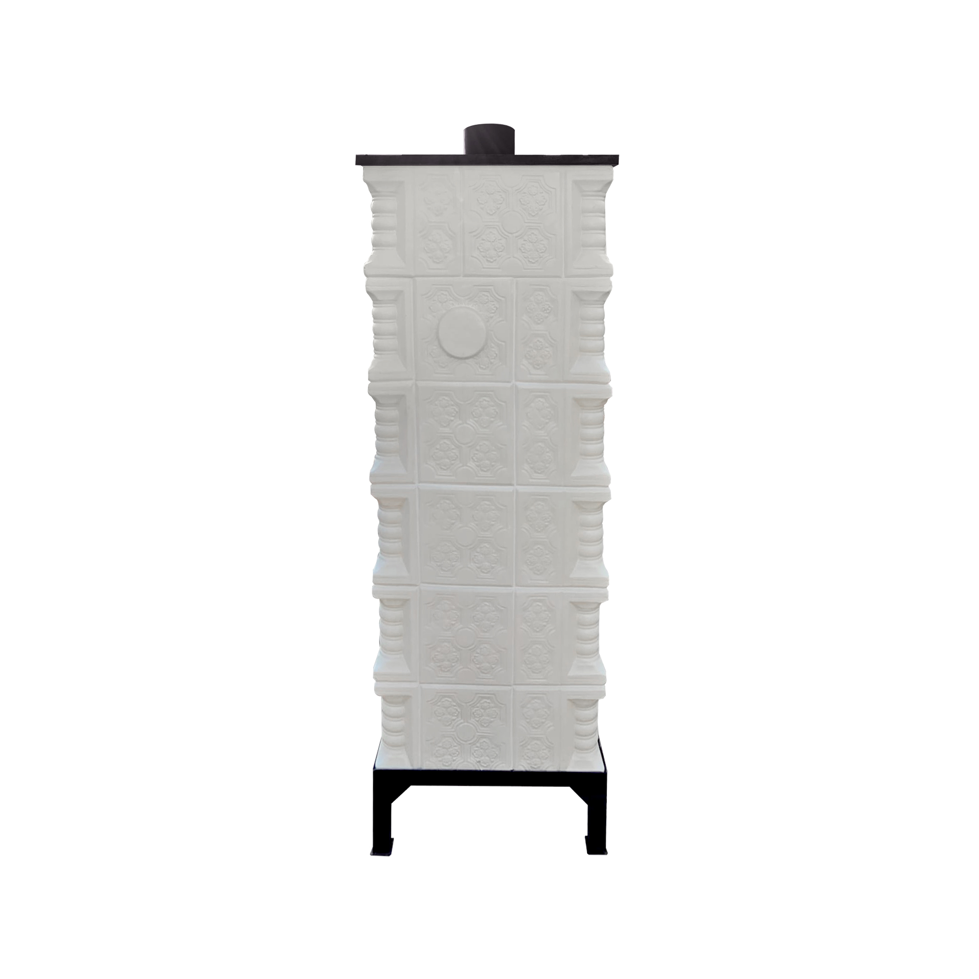 Construită pe un cadru solid din fier forjat de 5 mm grosime, soba este realizată din cahle de teracotă căptușite cu cărămidă refractară, iar focarul dublu șamotat asigură o ardere eficientă și durabilă. Ușa cu sticlă termorezistentă și tiraj dublu permite vizibilitate sporită asupra flăcărilor și o ardere mai controlată. Evacuarea verticală este realizată printr-un ștuț metalic de 4 mm grosime, asigurând tiraj natural optim și funcționare stabilă.