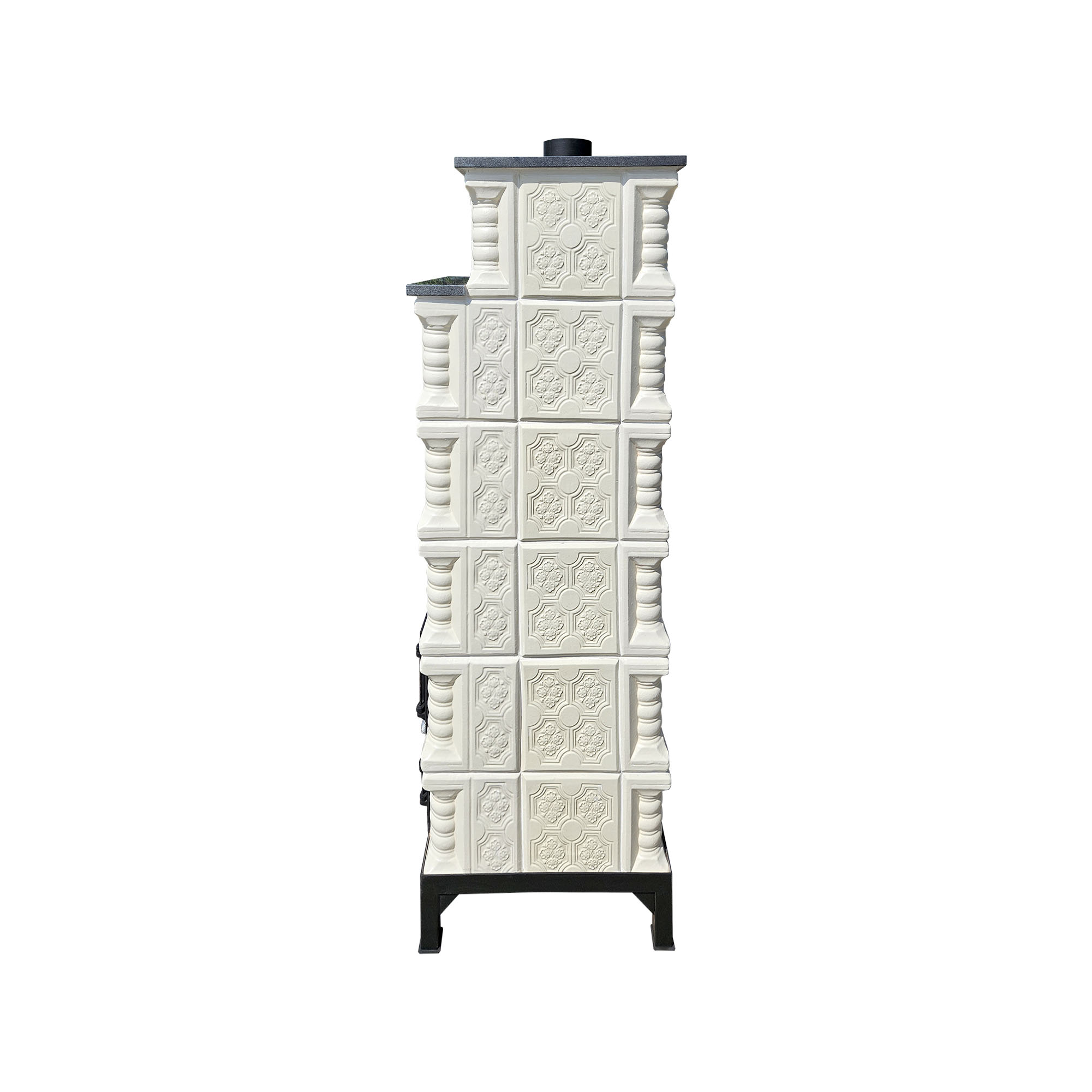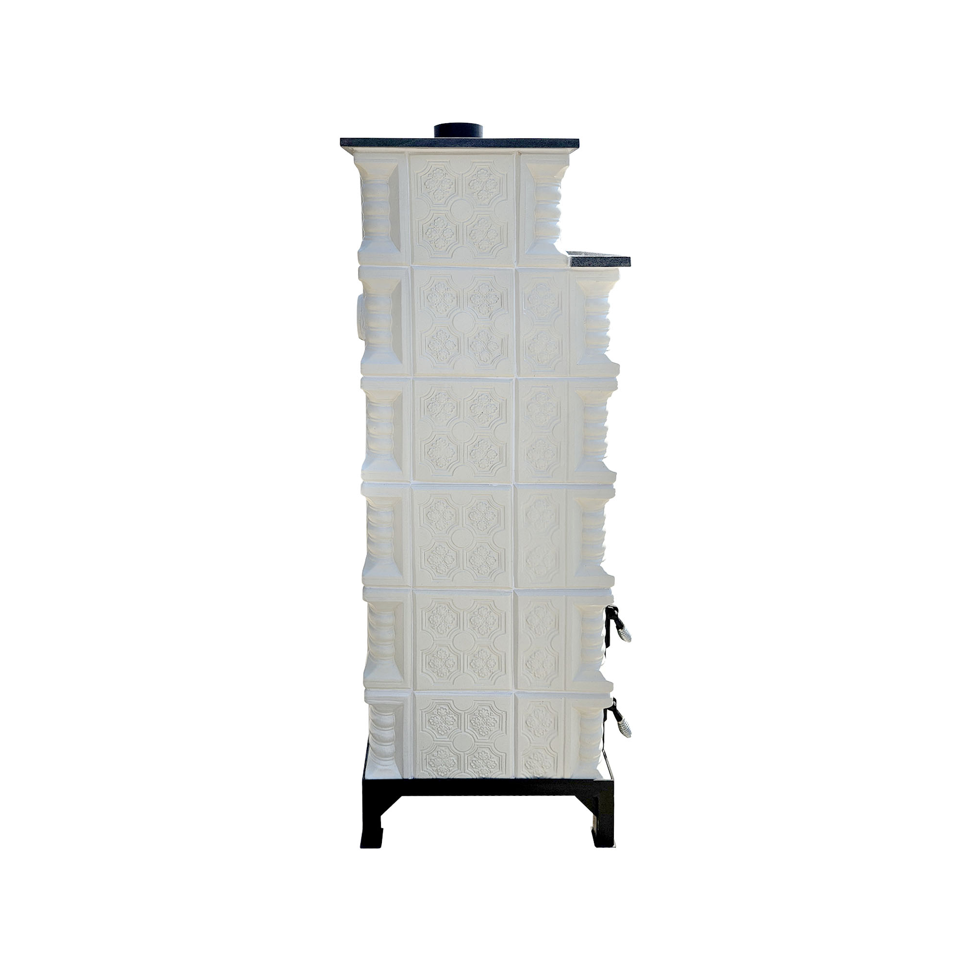 Făurită în spiritul sobelor tradiționale, Soba teracotă Gospodarul turn 6 rânduri panseluță albastră pictata manual reprezintă o soluție excelentă pentru încălzit, cu un bun randament termic la un consum scăzut de combustibil, având o suprafață radiantă de 3 mp! Construită pe un cadru solid din elemente de fier forjat de 5 mm grosime, cu fiecare cahlă de teracotă căptușită cu cărămidă refractară, focar dublu șamotat, ușă cu sticlă, evacuare verticală pe ștuț metalic de 4 mm grosime, lucrat cu adeziv și chit rezistente la temperatură, rezistență la transport/manipulare, Soba teracotă Gospodarul turn 6 rânduri panseluță albastră pictata manual constituie cea mai rapidă soluție de încălzit, precum și o frumoasă piesă de mobilier ce poate împodobi casa dvs. a cărei valoare va crește odată cu trecerea timpului. Adâncimea mărită a sobei mărește randamentul termic datorită fumurilor mai ample și permite alimentarea cu lemn în lungime de 35-40 cm, astfel că nu va trebui să tai lemnul la o dimensiune atipică. Plăcile decorative sunt pictate manual cu vopsele ecologice, cu desene inspirate din motivele populare românești și vin într-o gamă variată de culori.
