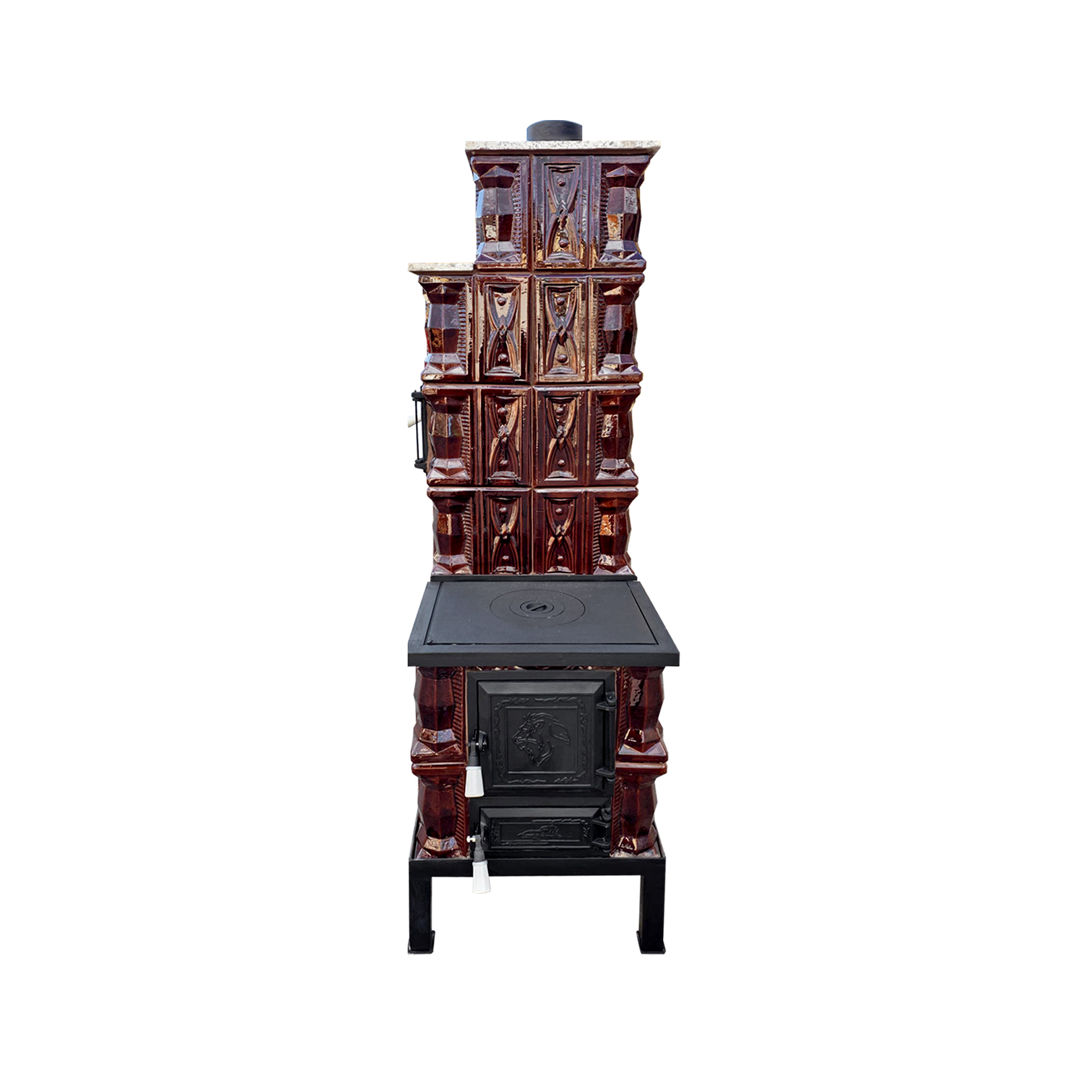 Construită pe un cadru robust din fier forjat de 5 mm grosime, fiecare cahlă de teracotă este căptușită cu cărămidă refractară, ceea ce oferă o durabilitate excelentă la temperaturi ridicate. Focarul dublu șamotat asigură o ardere eficientă, plita 1/2 permite prepararea alimentelor, iar cuptorul amplasat pe partea stângă este ideal pentru coacere tradițională. Alimentarea pe lung permite introducerea lemnelor de dimensiuni mai mari, fără tăieri suplimentare, facilitând exploatarea zilnică.