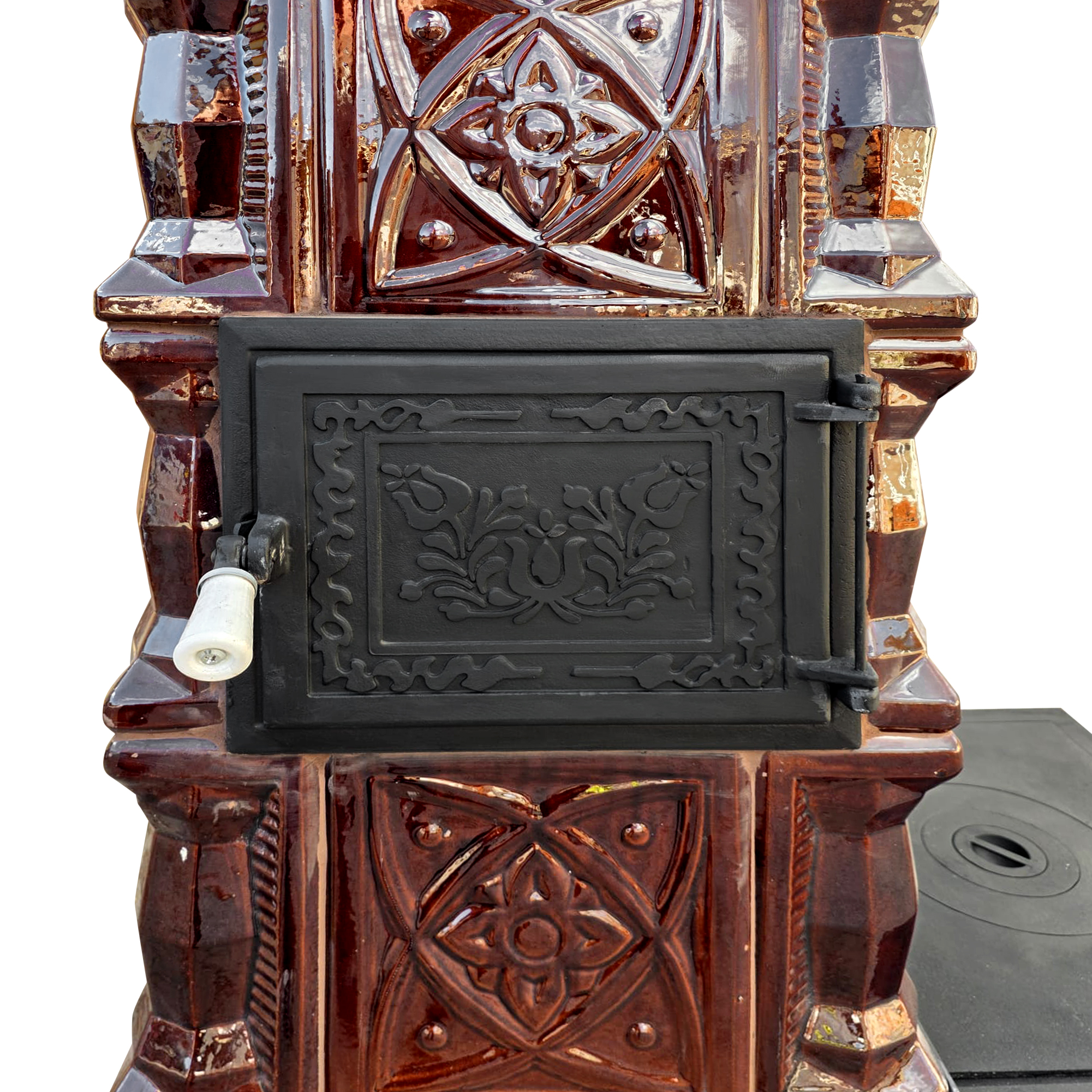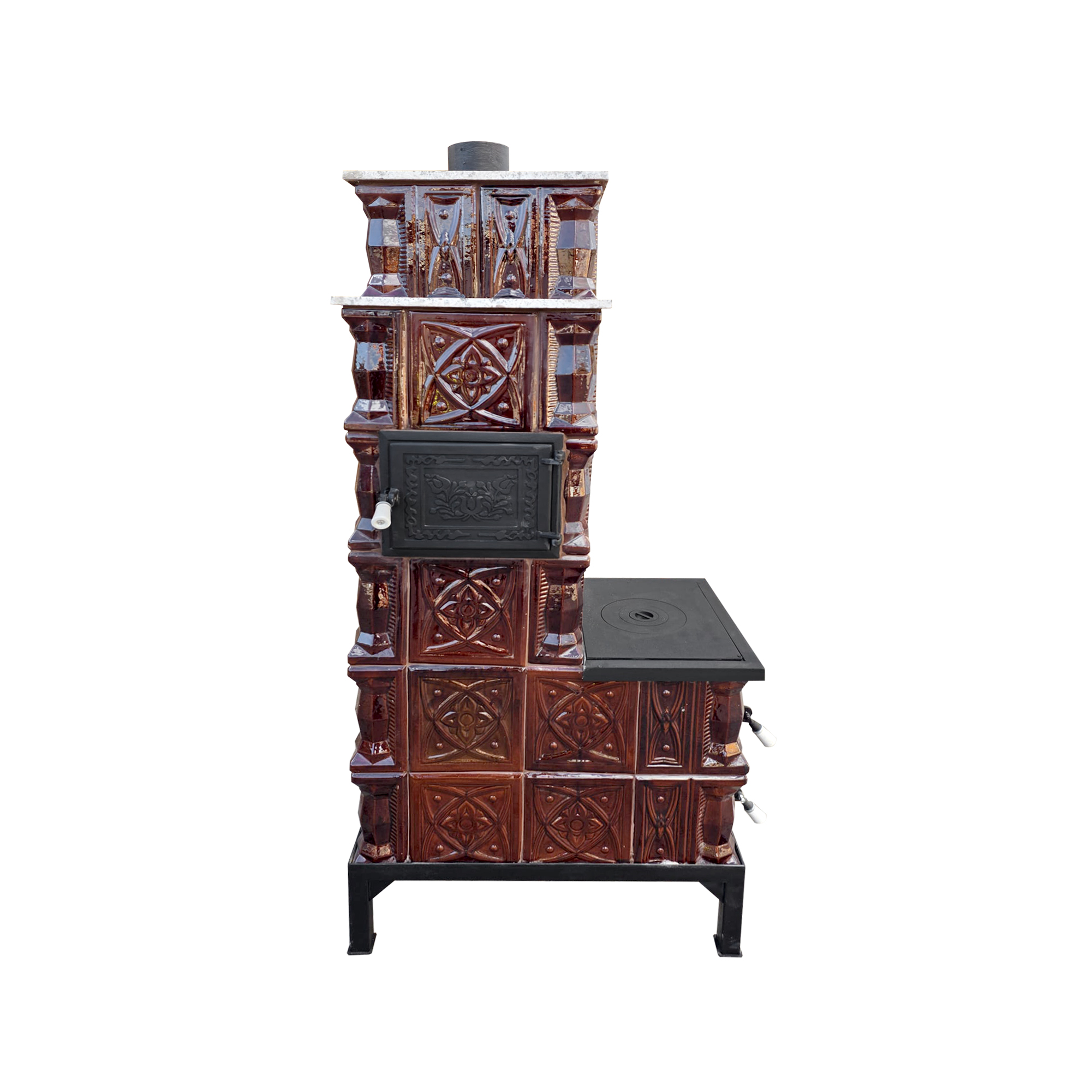 Făurită în spiritul sobarilor tradiționali, soba de teracotă mobilă Gospodarul – model 6 rânduri, cu plită 1/2, alimentare pe lung și cuptor poziționat în partea stângă – este soluția ideală pentru încălzire eficientă și gătit în stil clasic. Realizată în nuanța maro tradițional, soba păstrează farmecul și funcționalitatea sobelor de teracotă de altădată, fiind în același timp ușor de montat, utilizat și mutat la nevoie.